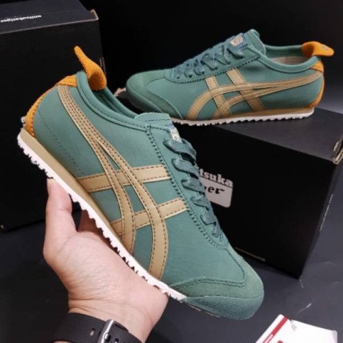 The Onitsuka Tiger Mexico 66 "Green Safari Khaki" (also known as the "Hiking Green" colorway) is a rugged, nature-inspired take on the slim 1966 silhouette. Perfect for those who prefer an earthy, utilitarian palette, this 7A Premium Quality edition swaps the traditional bright tricolors for a deep forest green upper and muted khaki stripes. It's the ideal choice for an "Outdoor Heritage" look that pairs seamlessly with cargo pants, olive chinos, or raw denim.