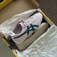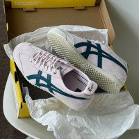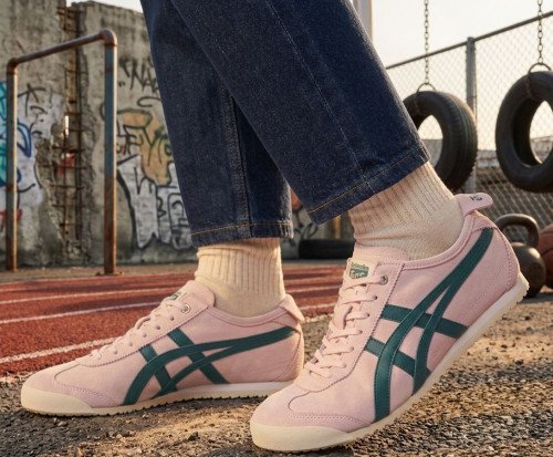 The Onitsuka Tiger Mexico 66 SD in "Crystal Pink/Spruce Green" is part of the "Super Deluxe" (SD) lineup, which reimagines the classic 1966 silhouette with modern performance technology and high-end materials. This specific colorway features a soft, pastel "Crystal Pink" upper contrasted by deep, forest-toned "Spruce Green" Tiger stripes. This 7A Premium Quality edition replicates the SD's upgraded cushioning and more streamlined, luxurious finish.