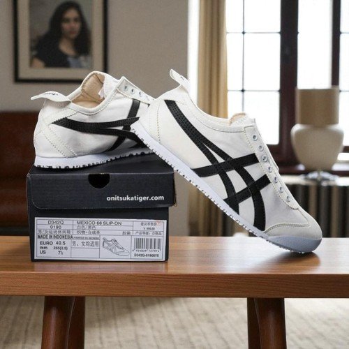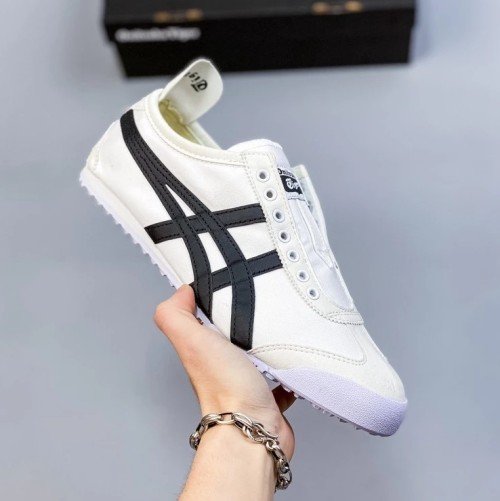 Benzer Shoes | Onitsuka Tiger Mexico 66 Slip On White Black Sneakers for Men