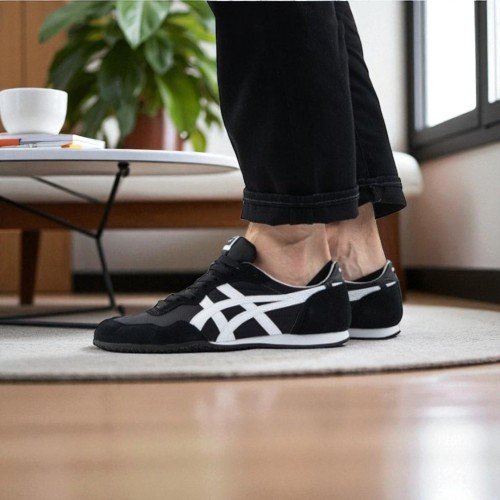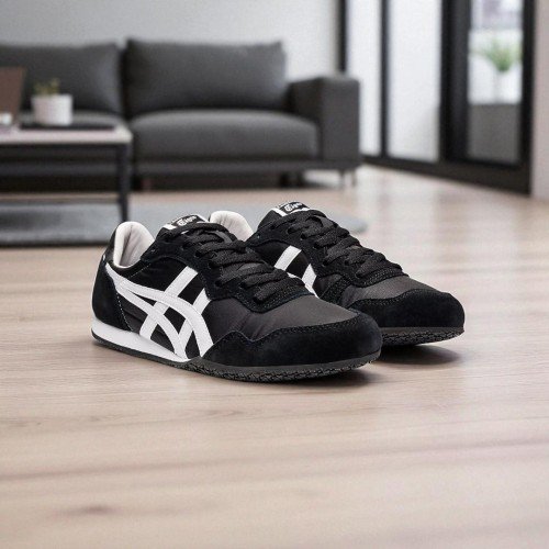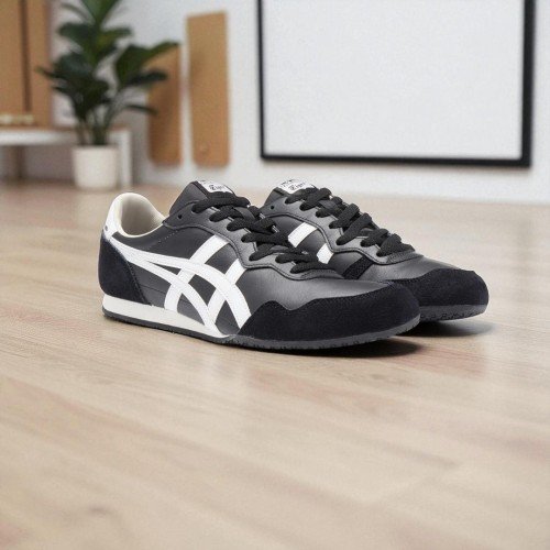 The Onitsuka Tiger Serrano in "Black/White" is a high-performance-inspired sneaker that draws its roots from the 1970s track spike revolution. This 7A Premium Quality (First Copy) replica meticulously recreates the Serrano’s famously lightweight and slim silhouette, offering a sportier alternative to the Mexico 66. It is a top choice for men who prefer a more "rounded" toe box and a slightly more substantial heel cushion while maintaining the brand's signature retro aesthetic.
