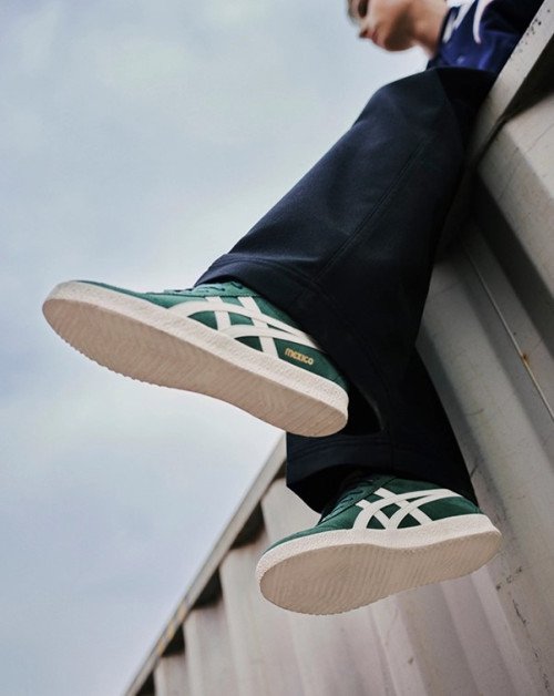 The Mexico Delegation was launched to celebrate the 50th anniversary of the 1968 games, ensuring that the original structure and production methods were maintained as closely as possible. The "Pine Green/Cream" edition is particularly noted for its serrated suede details and creamy off-white stripes, which evoke a classic retro-tennis or training shoe aesthetic.